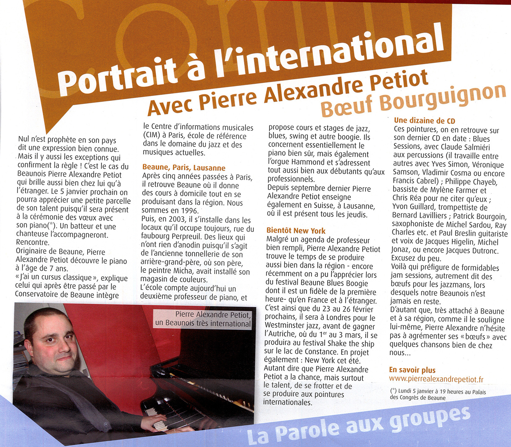 Pierre-Alexandre est Pianiste Jazz et Variétés International (Europe, USA...) à la tête de l'école AMA MUSIQUE de Beaune (21) et enseignant le Piano depuis 1995 en France et en Suisse.